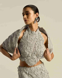 Jharokha Shyness cord embroidery | Glazed sequin and pearl highlight | 3D botanicals